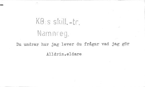 //// KB:s skin..tr. //// Nam nr e g. //// Du undrar hur jag lever du frågar vad jag gör Alldrin.eldare ////