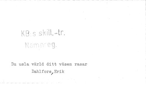 //// skitt.-tr. //// Du usla värld ditt väsen rasar Dahlfors Erik ////