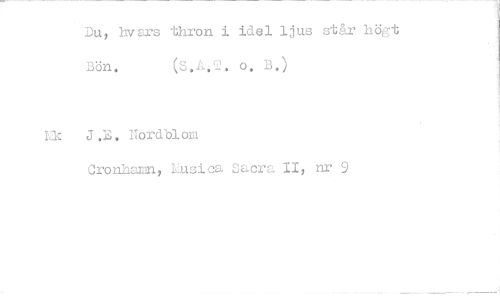 //// Du, hvå= thron i idel ljus står högt //// Bön. (S.A,2. o. B.) //// Ek J.2. Ifordblom //// Cronhamn, Lusica dacra II, nr 9 ////