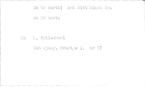 //// Du är bortal och ditt klara öla Du är borta //// Gyllenhaal //// Det sjung. Sverige 1. nr 57 ////