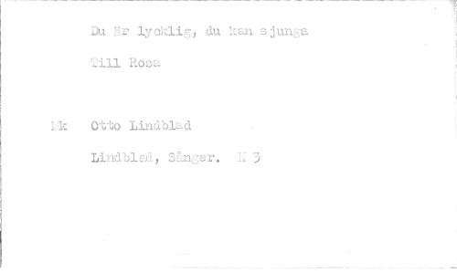 //// Du Ur lycklig, du kan sjunga Till Rosa //// 32k Otto Lindblad //// Lindblad, nnger. h 3 ////