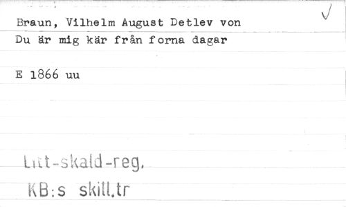 //// Braun, Vilhelm August Detlev von Du är mig kär från forna dagar //// E 1866 uu //// Lid-skald-Hg, //// KEI:s skilt tr ////