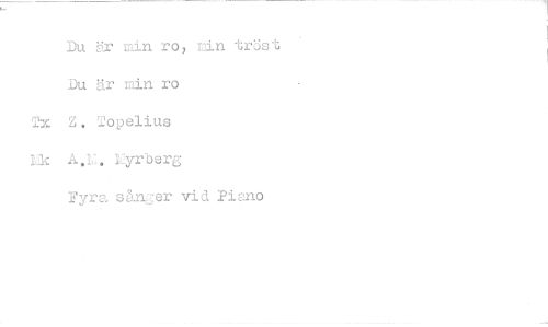 //// Du är min ro, min tröst //// Du är min ro //// Tx Z. Topelius //// A,L. Lyrberg //// Fyra sånuer vid Piano ////
