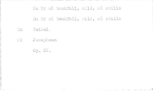 //// Du är så tankfull, nild, så stilla Dit är så tankfull, mild, så stilla //// Ti . //// Ik Josephson //// Op. 22. ////