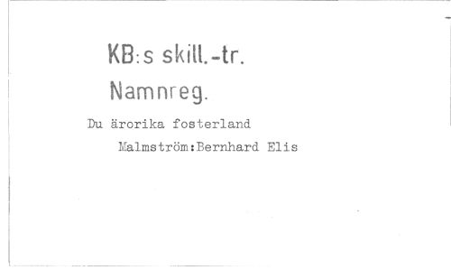 //// KB:s //// Namnreg. //// Du ärorika fosterland //// Malmström:Bernhard Elis ////