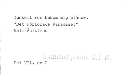 //// Dunkelt ren bakom mig blånar, "Det Förlorade Paradiset" Mel: Åhlström //// Del VII, nr 2 ////