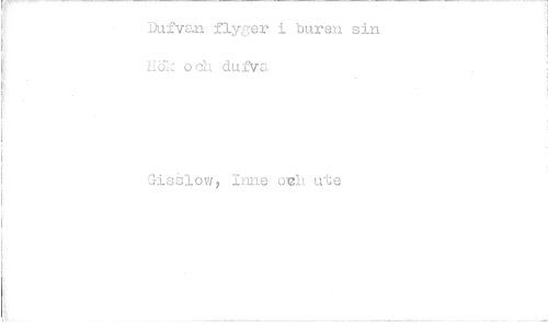 //// iDufvan flyger i buren sin Hök och duiVel. //// Gisslow, Inne orh ute ////