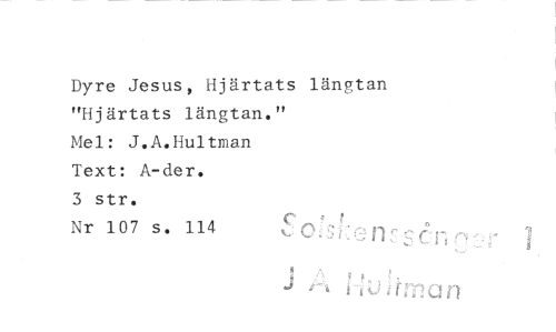 //// Dyre Jesus, Hjärtats längtan //// "Hjärtats längtan." //// Mel: J.A.Hultman //// Text: A-der. //// 3 str. //// Nr 107 s. 114 //// J J hWtmQn ////