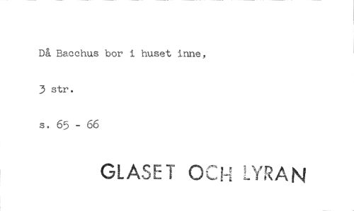 //// Då Bacchus bor i huset inne, 3 str. //// s. 65 - 66 //// GLASET -" LYRAN //// /LA //// i‘N ////
