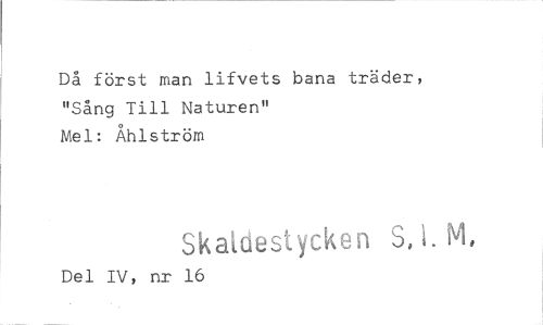 //// Då först man lifvets bana träder, "Sång Till Naturen" Mel: Åhlström //// Skatciestycken 3, L M. //// Del IV, nr 16 ////