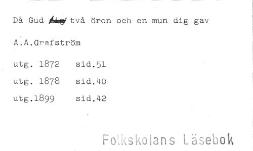 //// Då Gud Ååmg två öron och en mun dig gav A.A.Grafström //// utg. 1872 sid.51 //// utg. 1878 sid.40 //// utg.1899 sid.42 //// Fokoans Läsebok ////