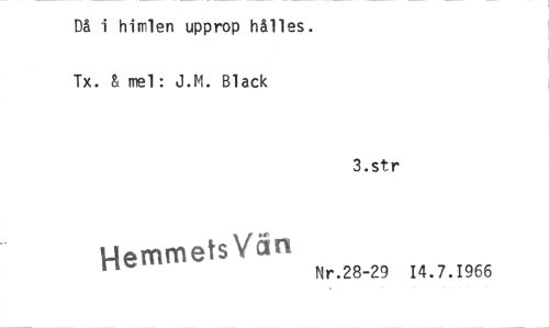 //// Då i himlen upprop hålles. //// Tx. & mel: J.M. Black //// 3.str //// Hemmets Vän Nr.28-29 14.7.1966 ////