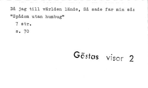 //// Då jag till världen lände, Så sade far min så: "Spådom utan humbug" //// 7 str. s. 70 //// G8st0s viscr 2 ////