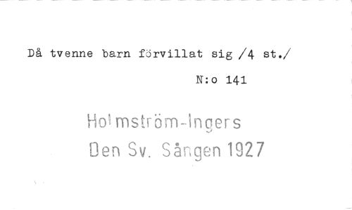 //// Då tvenne barn förvillat sig /4 st. //// /N:o 141 //// Ho.mström-Ingers //// Den Sv. Sången 1927 ////