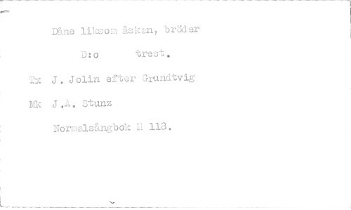 //// Dåne liksom åskEn, bröder //// D:o trest. //// 2x J, John efter Grundtvie Mk J.A. Stunz //// Normalsångbok II 118. ////