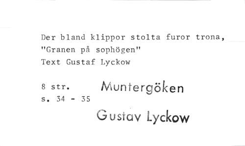 //// Der bland klippor stolta furor trona, "Granen på sophögen" Text Gustaf Lyckow //// 8 str. Muntergöken //// s. 34 - 35 //// Gustav Lyckow ////