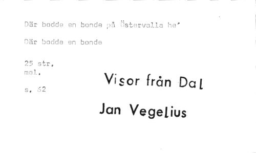 //// Där bodde en bonde på ästervalla he' Där bodde en bonde //// 25 str, mel, Visor från Dat //// s. (52 Jan Ve gel ius ////