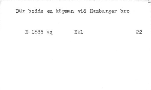 //// Där bodde en köpman vid Hamburger bro //// E.1835 gg Ekl 22 ////