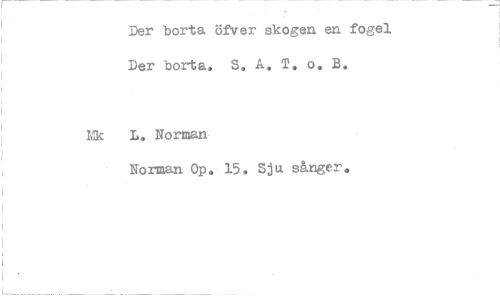 //// Der borta öfeer skogen en fogel //// Der borta. S. A. T. o. B. //// Ek Z. Norman. //// Norman ON 15, Sju sånger. ////