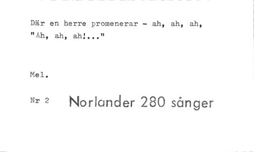 //// Där en herre promenerar - ah, ah, ah, "Ah, ah, ah!..." //// Mel. //// Nr 2 Noriander 280 sånger ////