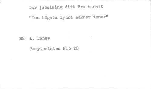 //// Der jubelsång ditt öra hunnit "Den högsta lycka saknar toner" //// Mk L. Denza //// Barytonisten N:o 28 ////