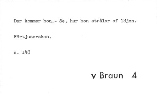 //// Der kommer hon,- Se, hur hon strålar af löjen. Förtjuserskan. //// s. 148 //// v Braun 4 ////