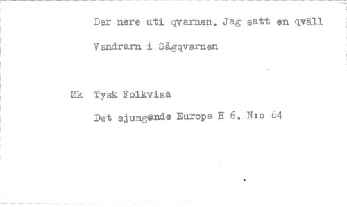 //// Der nere uti qvarnen. Jag satt en qväll Vandrarn i Sågqvarnen //// Ek Tysk Folkvisa //// Det sjungönde Europa H 6. N:o 64 ////
