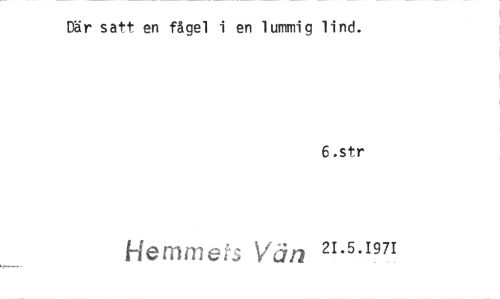 //// Där satt en fågel i en lummig lind. //// 6 .str //// vän 21.5.1971 ////