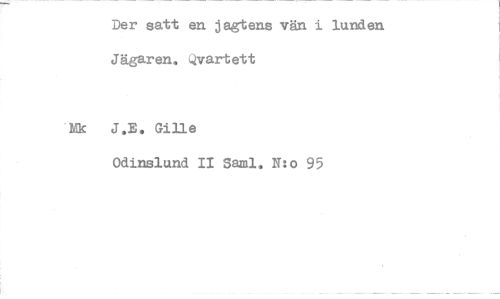 //// Der satt en jegtene vän i lunden Jägaren. Qvar-tett //// Hk J.E. Gille //// Odinaland II Saml. N:o 95 ////