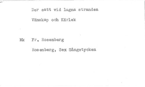 //// Der satt vid lugna stranden Vänskap och Kärlek //// Mk Fr. Rosenberg //// Rosenberg, Sex Sångstycken ////