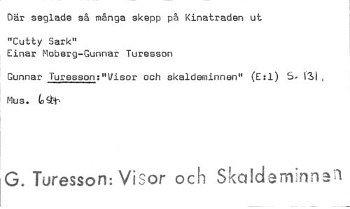 //// Där seglade så många skepp på Kinatraden ut //// "Cutty Sark" //// Einar Moberg-Gunnar Turesson //// Gunnar Turesson:"Visor och skaldeminnen" (E:1) S. 131, //// mus. Costi //// G. Turesson: Visor och Slcalciarnnn3n ////