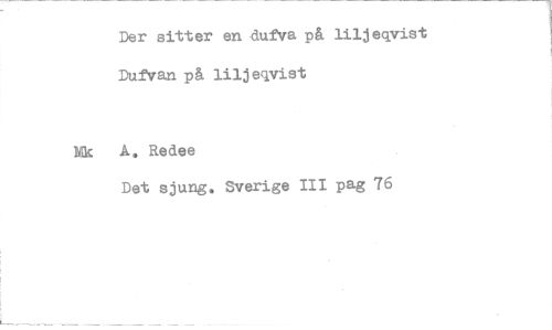 //// Der sitter en•dufVa på liljeqvist Dufvan på liljeqvist //// Nk A. Redee //// Det sjung. Sverige III pag 76 ////