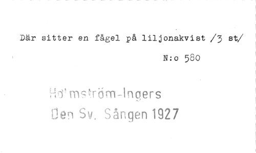 //// Där sitter en fågel på liljonakvist /3 st //// /N:o 550 //// m9k•dm-ingers //// r), en Sv. Sången 1927 ////