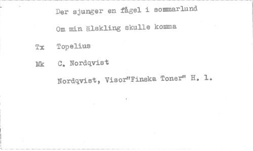//// Der sjunger en fågel i sommarlund //// Om min älskling skulle komma //// Tx Topelius //// Ek C. Nordqvist //// Nordqvist, Visor"Finska Toner" H, 1, ////