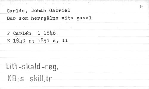 //// Carldn, Johan Gabriel //// Där som herrgålns vita gavel //// F Carldn, 1 1846 //// E 1849 p; 1851 s, ii //// titt-skatd-reg, //// KB:s skilUr ////