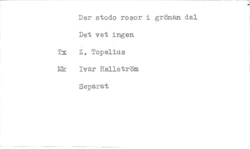 //// Der stodo rosor i grönan dal //// Det vet ingen //// Tx Z. Topelius //// Nk Ivar Hallström //// Separat ////