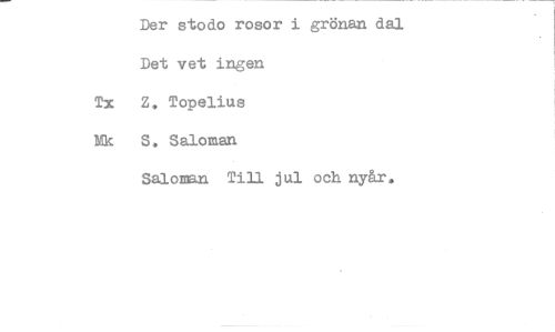 //// Der stodo rosor i grönan dal //// Det vet ingen //// Tx Z. Topelius //// Mk S. Saloman //// Saloman Till jul och nyår. ////