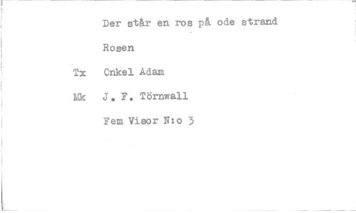 //// Der står en ros på ode strand //// Rosen //// Tx Onkel Adam //// Nk J. F. Törnwall //// Fem Visor Nto 3 ////