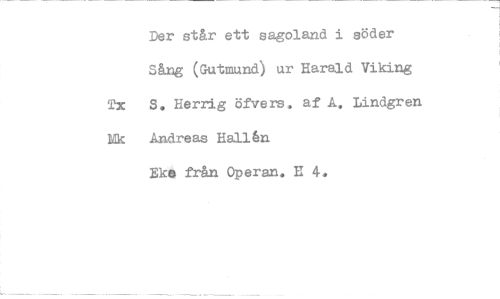 //// Der står ett sagoland i söder Sång (Gutmund) ur Harald Viking S. Herrig öfeers, af A. Lindgren //// Nk Andreas Halllin //// Eke från Operan. H 4. ////