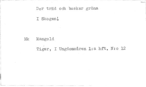 //// Der träd och buskar gröna I Skogen: //// & Mangold //// Tiger, I Ungdomsåren 1:a hft, N:o 12 ////