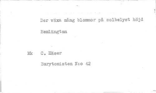 //// Der växa mång blommor på solbelyst höjd Hemlängtan //// Båk C. Häser //// Barytonisten no 42 ////