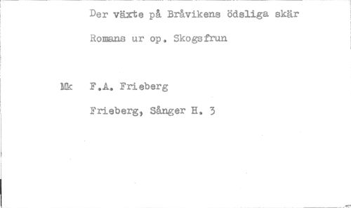 //// Der växte på Bråvikens ödsliga skär Romans ur op. Skogsfrun //// Nk F.A. Frieberg //// Frieberg, Sånger H. 3 ////