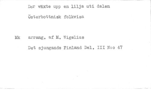 //// Der växte upp en lilja uti dalen Österbottnisk folkvisa //// Mk arrang. af M. Wigelius //// Det sjungande Finland Del. III N:o 47 ////