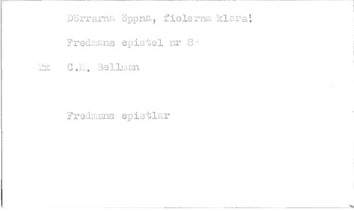 //// Dörrarna öppna, fiolerna klara; Fredmans epistel nr 8 //// 0 Bolinen //// Fredmans epistlar ////