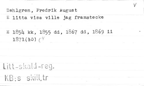 //// Dahlgren, Fredrik August //// E lifta visa ville jag framstecke //// E 1854 kk, 1855 dd, 1867 dd, 1869 ii 1871(10) //// Litt-skati-reg, //// KB:s skiWtr ////