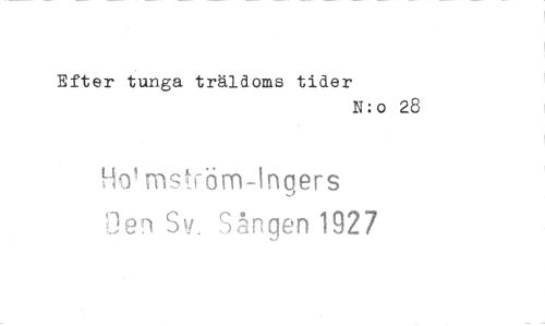 //// Efter tunga träldoms tider //// N:o 28 //// Ho' mstörn-ingers //// 1-.)en Sv. Sången 1927 ////