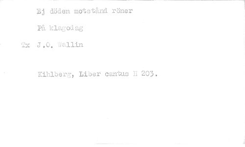 //// Ej döden motstånd röner På klagodag //// 52x J.O. Wallin //// Kihlberg, Liber cantus h 203. ////
