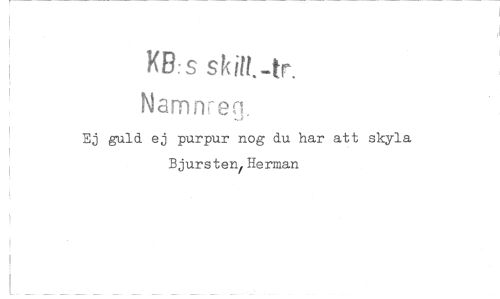 //// KB: s skilt,-tr. //// Namnreq, //// Ej guld ej purpur nog du har att skyla Bjursten/Herman ////