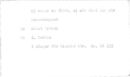 //// 2j susar en =t, ej et blad sig rör //// Sommarrepmet Tx lrnst 3jörck //// L. Norr= //// 5 sånger för blandad körs Op. 66. III ////