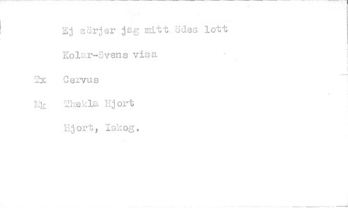//// Ej sörjer ag mitt .ödes lott, Kolar-Svens visa //// 2x Cervus //// Ihekla Ej ort //// Hjort, Iskog, ////